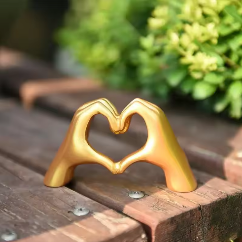 Add a touch of elegance and modern charm to your space with this Gold Heart Hand Gesture Statue. Ideal for your living room, bedroom, or office, this sculpture symbolizes love and connection. Crafted with attention to detail, it fits beautifully into any contemporary decor style.